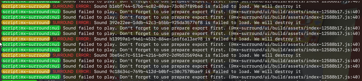 Then I updated mx-surround to the latest version, and it still gives out the errors as seen in the video/screenshot above (slightly different wording, before it didn’t mention “prepare export”).