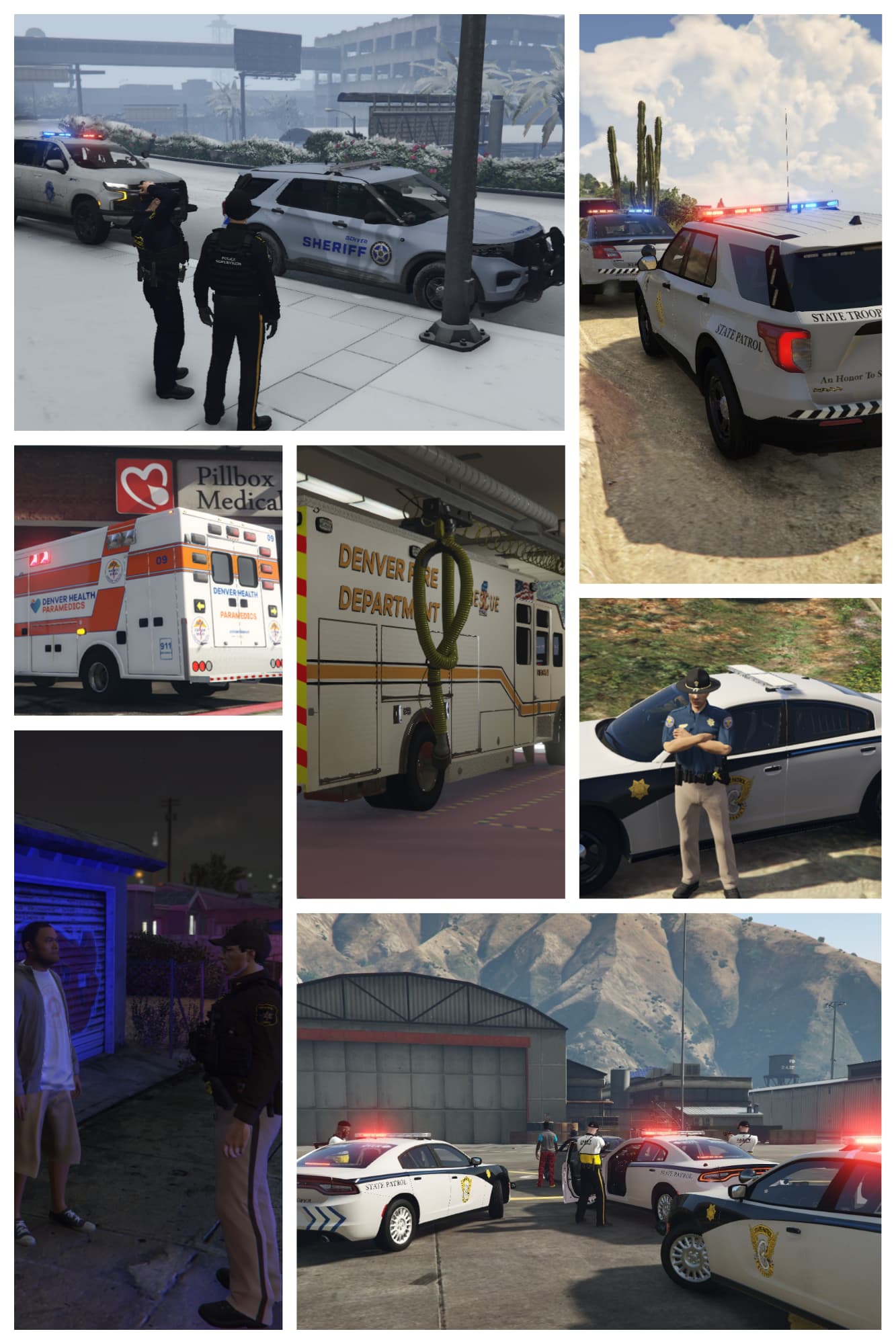 911 Colorado RP is a fast growing community dedicated to realism and fun. With daily patrols, custom 1:1 real life vehicle liveries, and active members; Your time as a Denver Sheriff Deputy, Denver Police Department Officer, Colorado State Trooper, Denver Fire Department firefighter or Denver Health Paramedic will be exhilarating and rewarding. We are vmenu based with FivePD, meaning we focus SOLELY on LEO and Fire/EMS role play for an unmatched immersive experience.