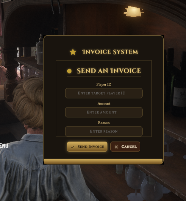 Send invoices to players with custom amounts, reasons, and confirmation notifications.