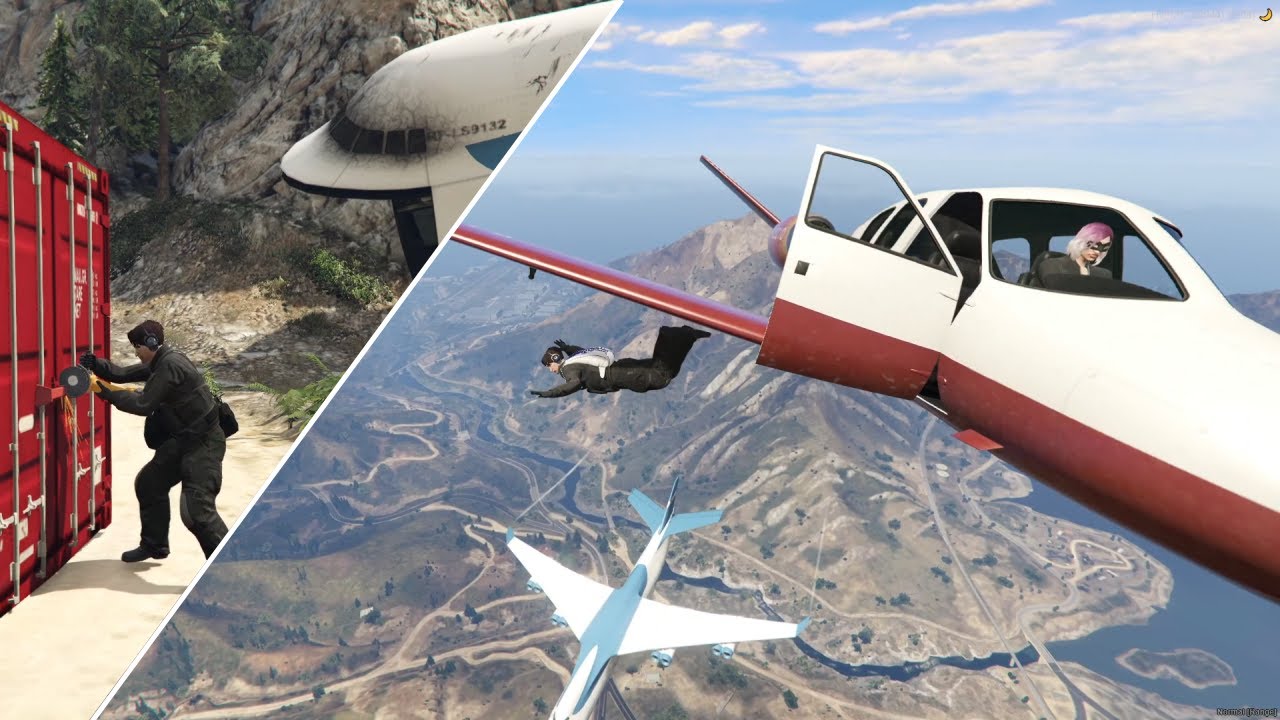 : Jump out and land on the cargo plane mid-air. Control your fall and brace for the landing!