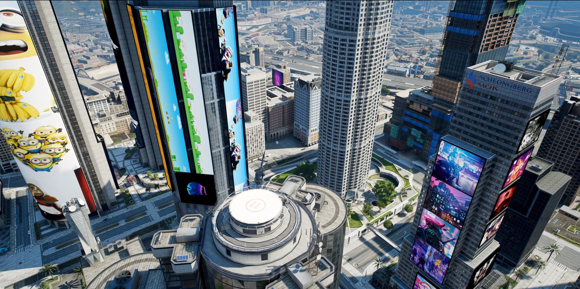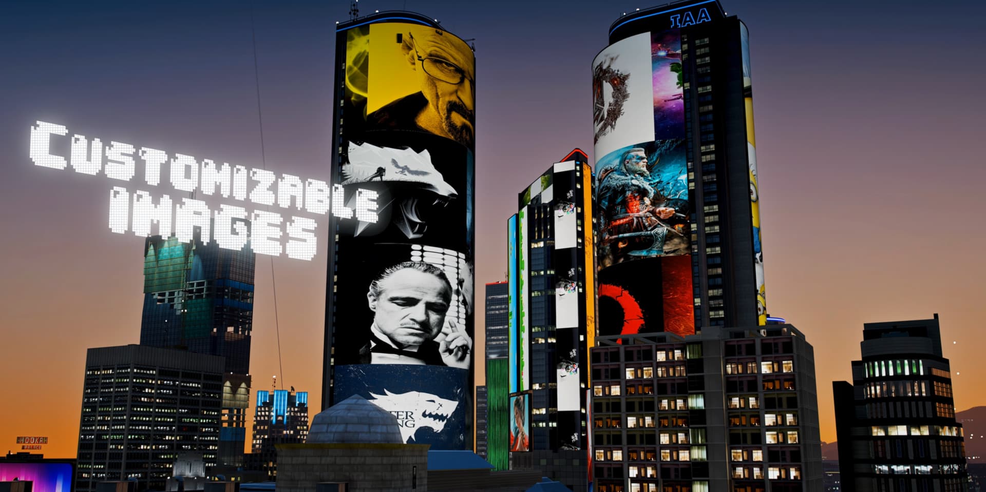 The billboards on the buildings have a LOD system for textures, moving away from the model will load a texture with 1/4 the resolution of the main texture, similar to how R* works.
