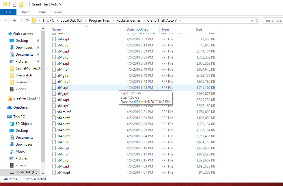 If an issue with starting: GTA V folder screenshot
