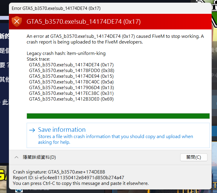 CitizenFX crash zip file (‘Save information’ on a crash)