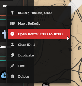 - allow you to create blips that will display “open” or “closed” in the name based on In Game hours