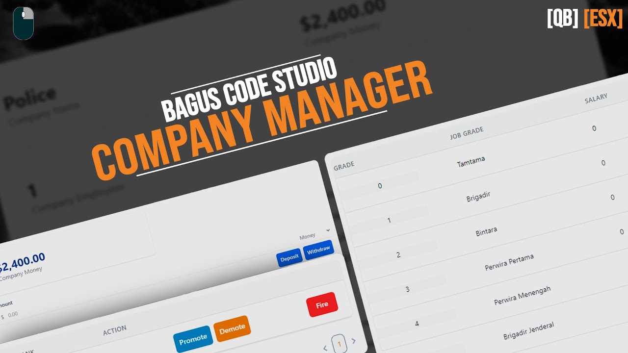 A 3-In-1 script UI that has Boss, Billing, & Duty menu. It enables user to see data easily and manage their company better. This script uses escrow system encryption. There are configurable files that you can configure to your liking. UI source code is available.