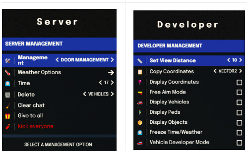 - Server Tools: Clear chat, manage weather, spawn vehicles, and much more.