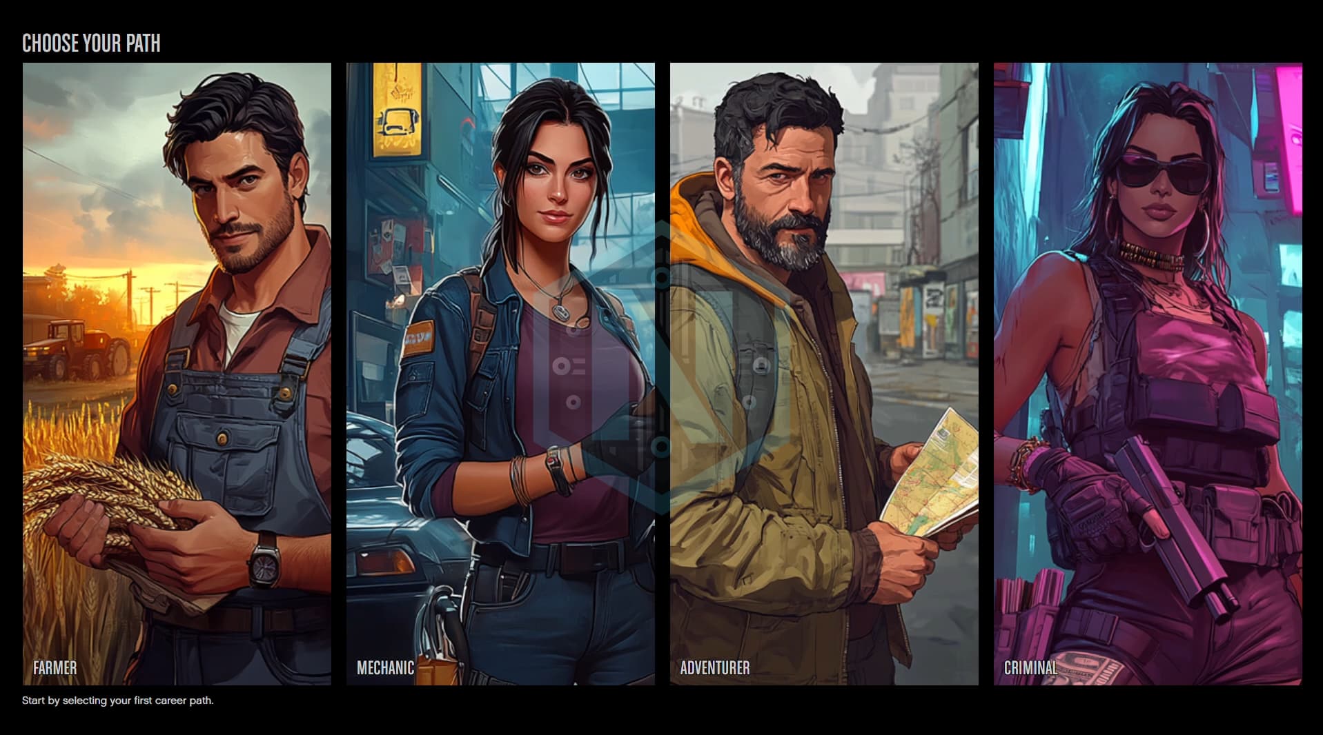 Define multiple character paths with unique names, descriptions, and visuals—perfect for roles like Mechanics, Farmers, Criminals, Adventurers, or custom server factions. -