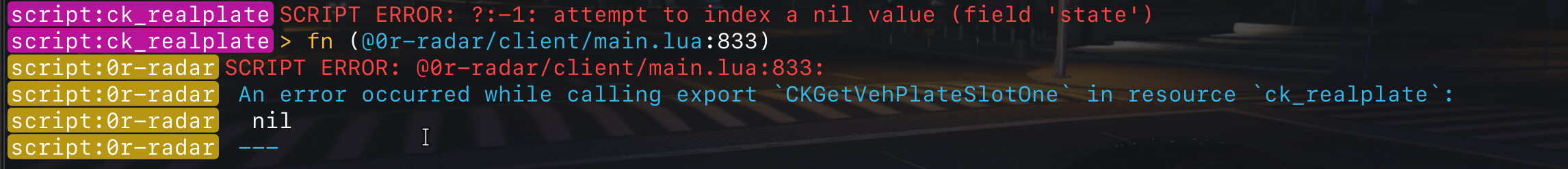 Here is the error from mechanic job and speed camera radar scripts.