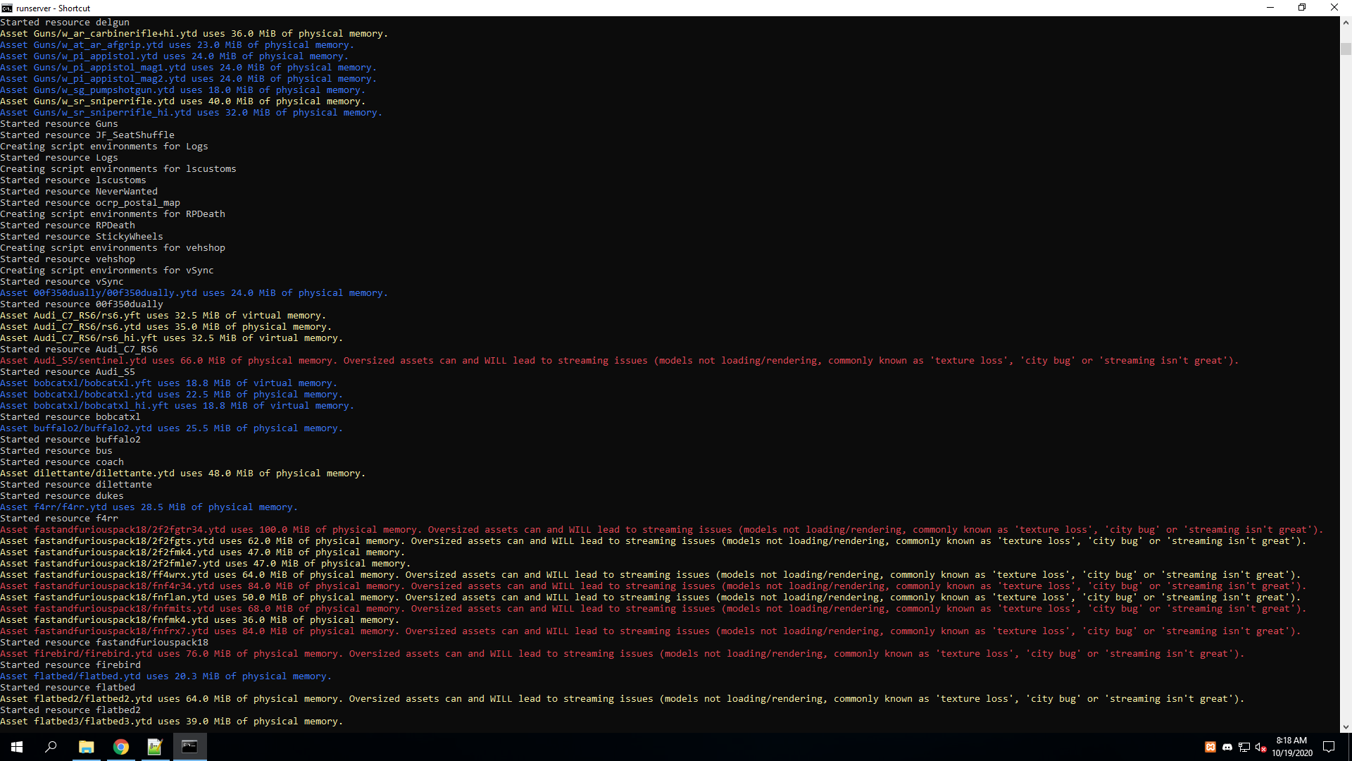 Asset fastandfuriouspack18/2f2fgtr34.ytd uses 100.0 MiB of physical memory. Oversized