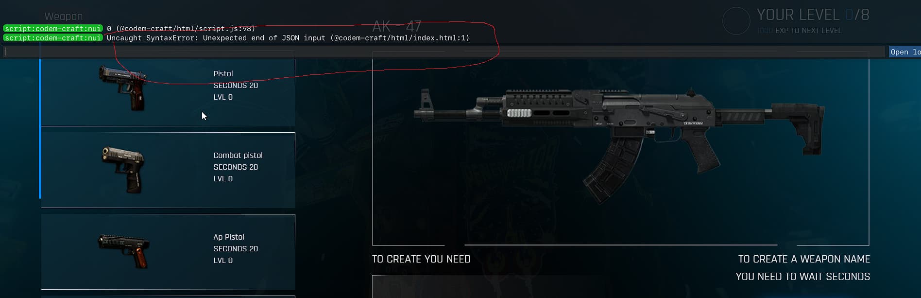 When I choose a weapon to see what is needed it throws the following error, any help? I have not been able to solve by myself.
