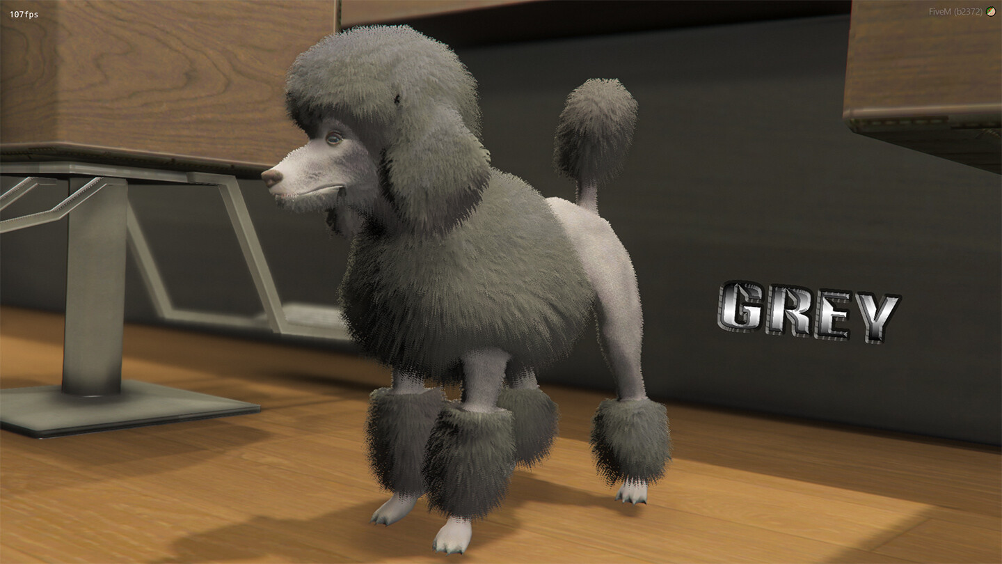 Fur colours can be cycled through via the Legs texture option (Menyoo) or Legs / Pants option in FiveMโs vMenu (Press Enter)