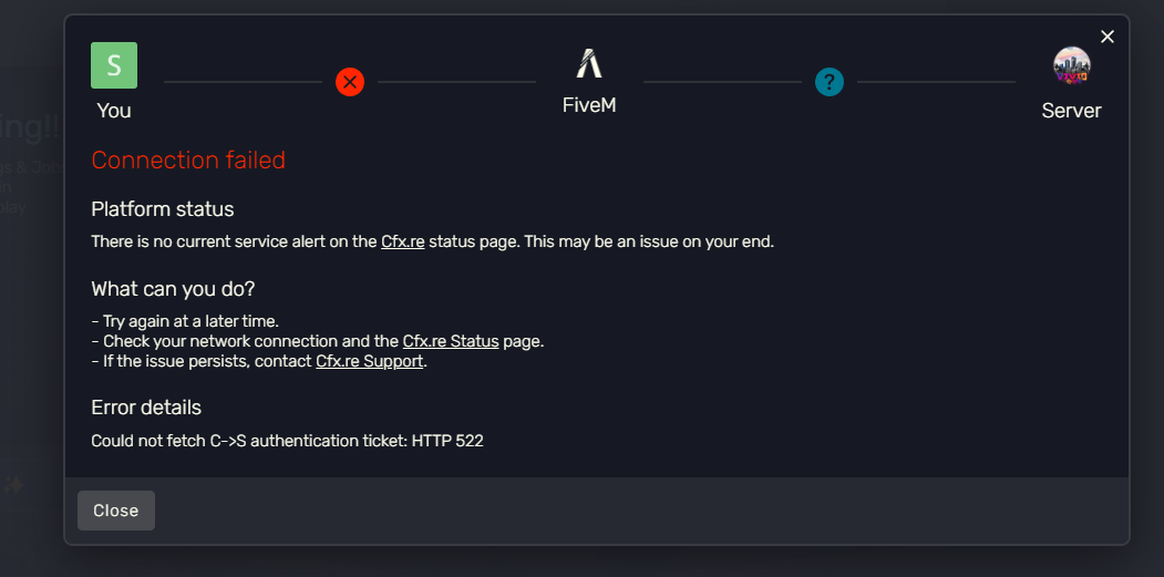 Please note that most of the support is provided by the Cfx.re community on a voluntary basis. We ask you to be patient; there is no guarantee we have a solution to your problem(s). To avoid unnecessary/duplicate topics, please browse the forums before creating a topic.