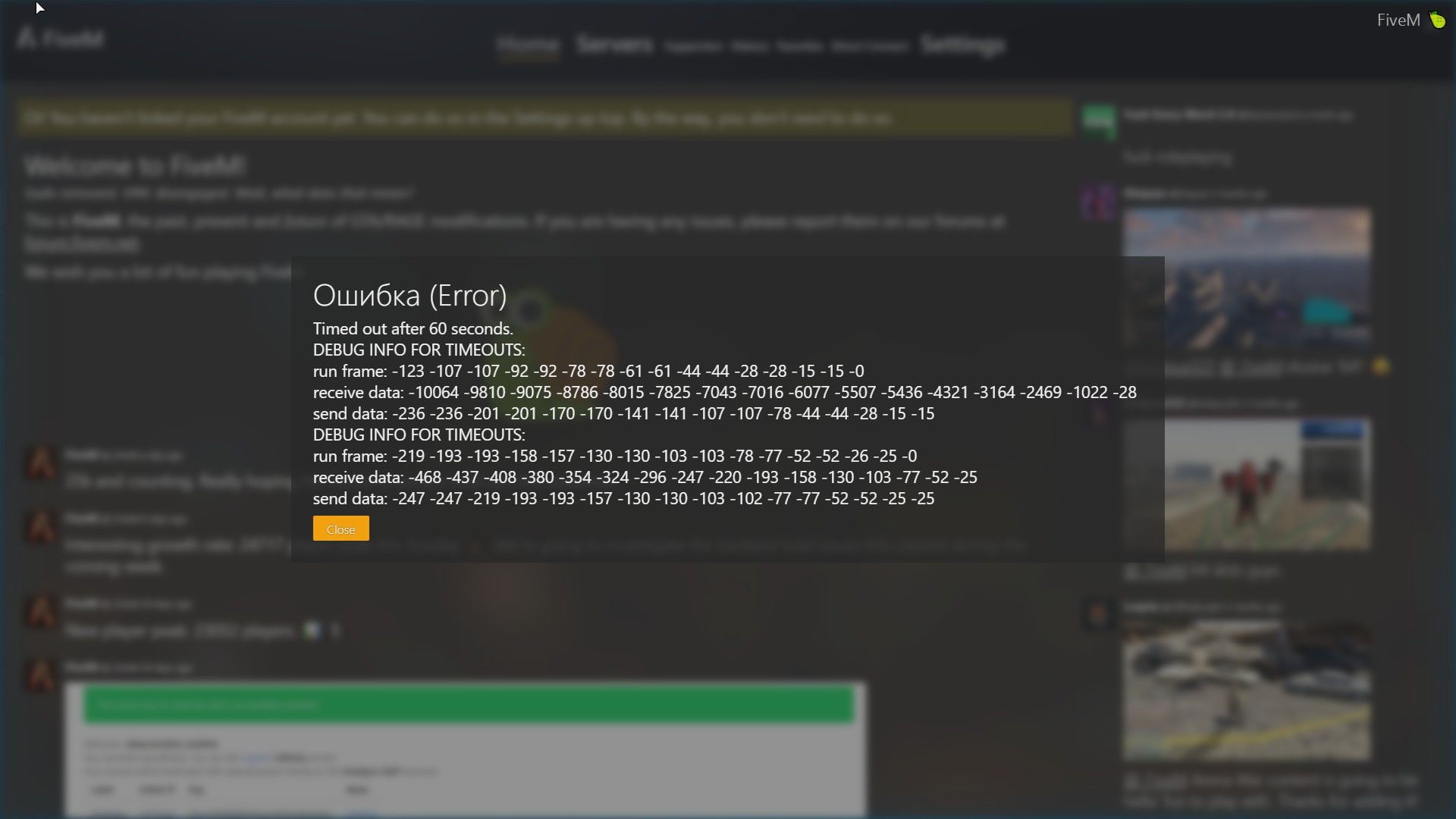 System specifications ASUS ROG Zenith Extreme, AMD Ryzen Threadripper 2, 48 Gb G Skill Trident Z DDR4, NVIDIA RTX 2080 What did you do to get this issue? When joining any server but the test server this happens on the loading screen and once I actually join the server. If I actually get to join the server this will put me into a ghost/split server. Additionally it will sometimes cause my game to freeze or close and give me the message that others have not updated. I have not been able to stay in a server for more than a minute. What server did you get this issue on? ANY server I join (I have tried my normal server and randomly joined five others, but the test server is the only one I don’t have this issue with CitizenFX.log fileCitizenFX.log.9 (553.2 KB)