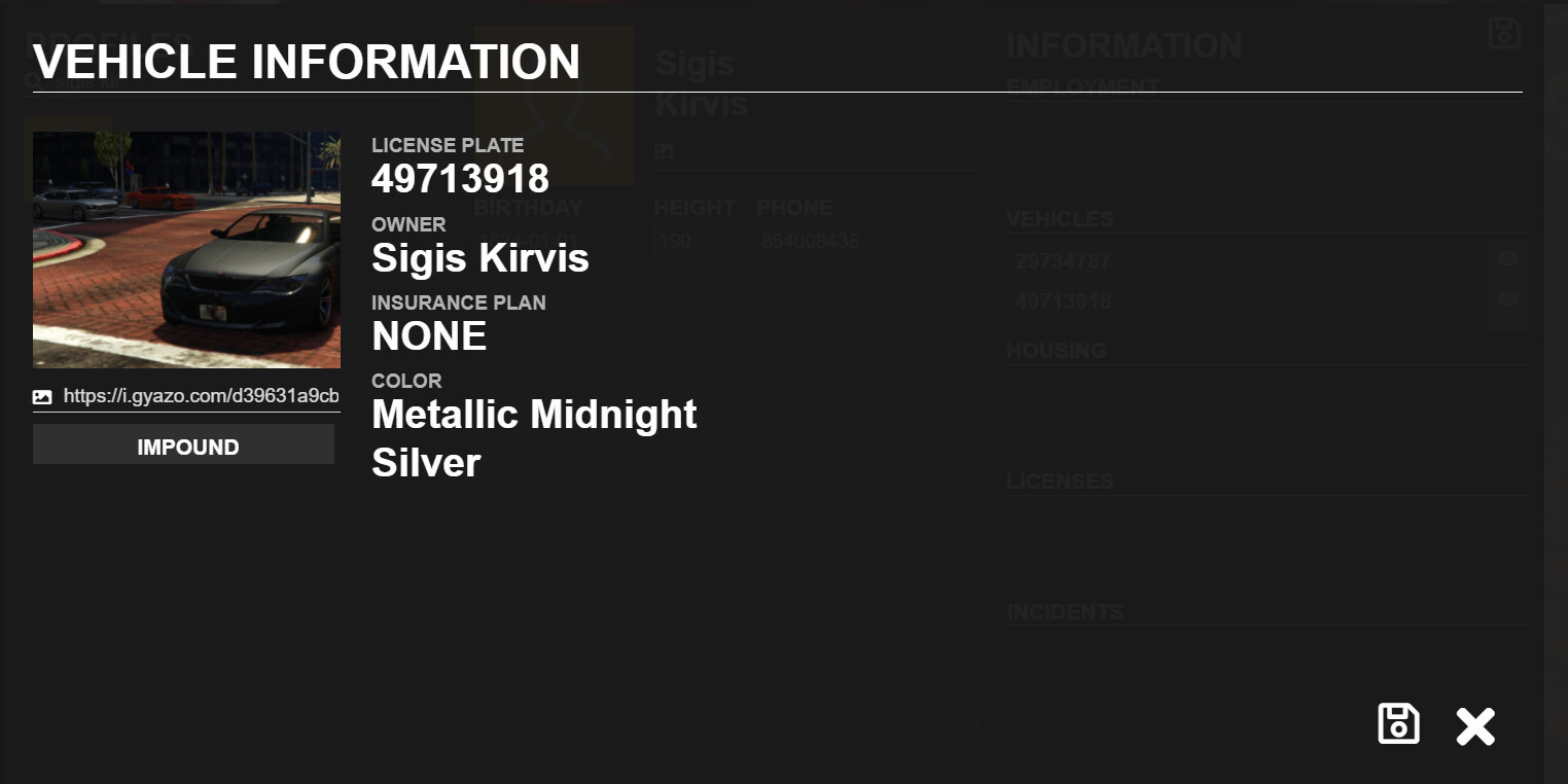 - Added vehicle information menu compatible with Core Insurance and ability to impound a vehicle
