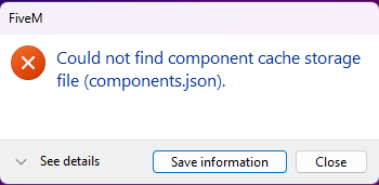 The game is crashing, as soon as i start it, without getting an error. But in cmd, it says that Could not find component cache storage file (components.json)