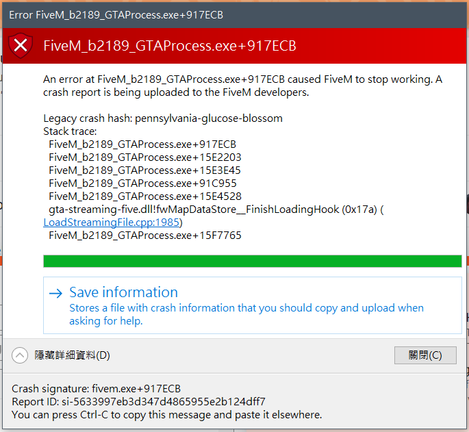 CitizenFX crash zip file (‘Save information’ on a crash):