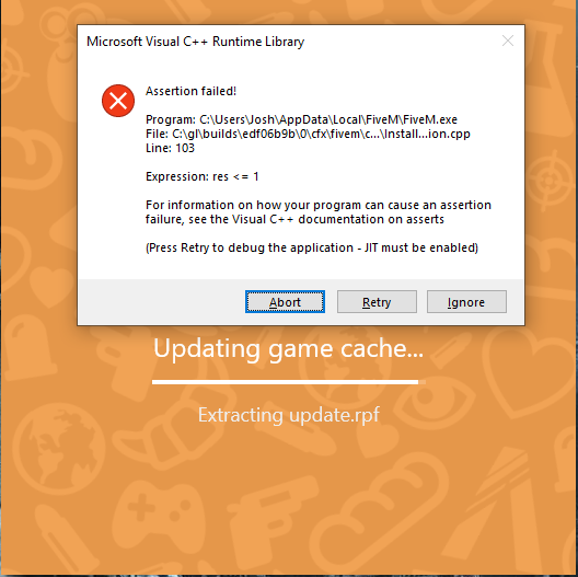 What did you do to get this issue? trying to run fiveM, it says it needs to update, it extracts gtav.exe fine but crashes on extracting update.rpf every time, with the same error, though at different points in the progress bar.