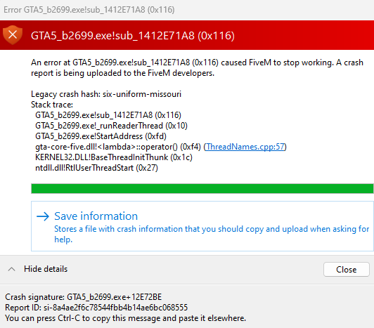 CitizenFX crash zip file (‘Save information’ on a crash):