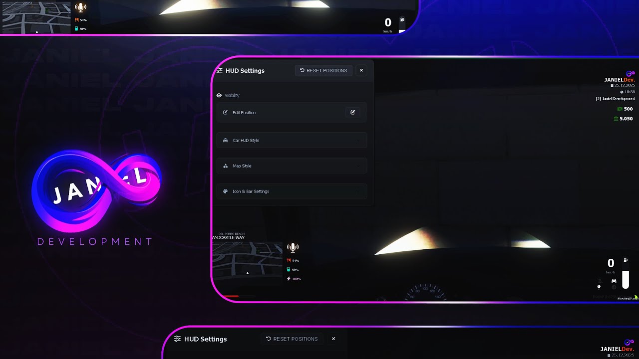 Customizable HUD is a modern, performance-friendly HUD system for FiveM servers. It is framework-agnostic and works with QBCore, ESX, QBox, and standalone setups through janiel-core.