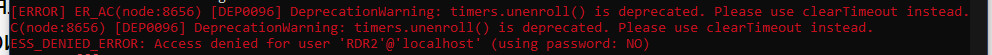 The timers warnings are just that, warnings. So they aren’t an/the issue. The issue is authentication with your DB. Your user/pass combo is wrong in your connection string in server.cfg.