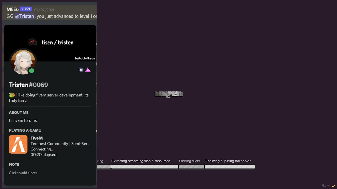 SetDiscordRichPresenceAction(0, "Wanna know what Tempest is? Click me!", "https://www.tempestcommunity.com")