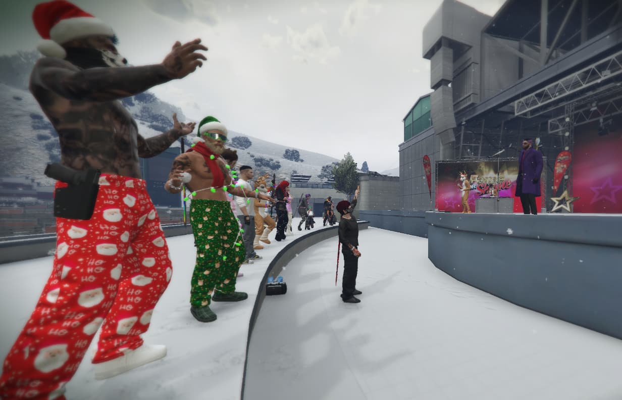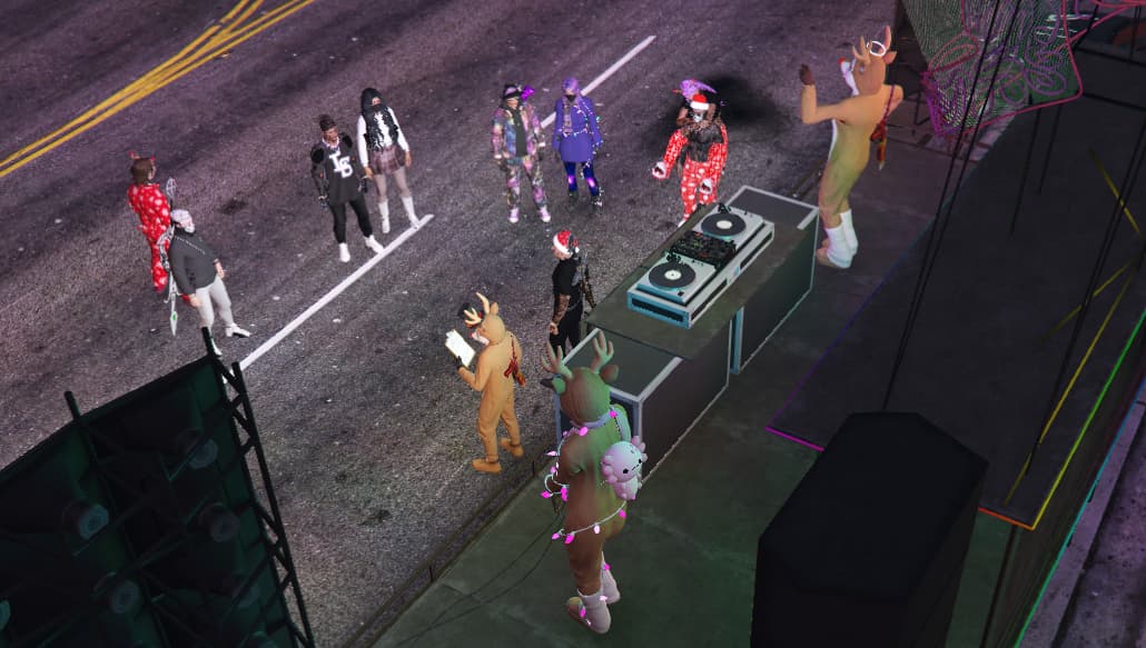 with the time of year and snow on the ground, the reindeer are active and causing mischief, but with the help of the people, spreading the joy with some Christmas karaoke.