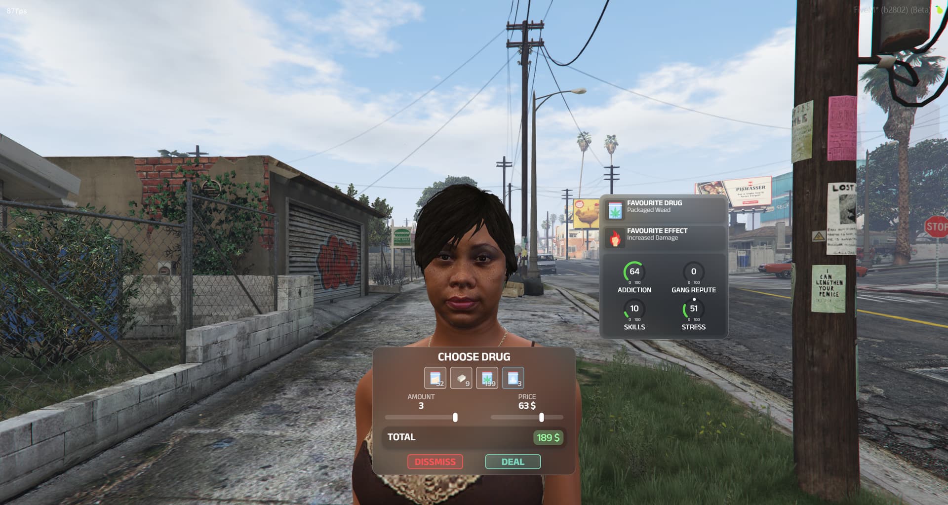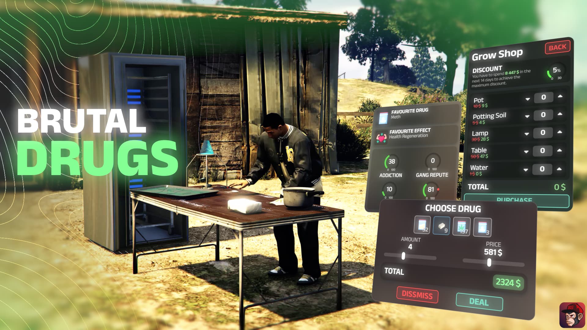 - Advanced drug selling system with chance you get an offer to go to a location to sell bigger amounts of drugs