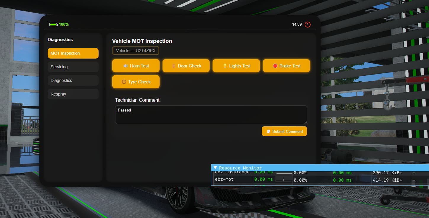Keep your FiveM roads safe and realistic with EBZStudios MOT, a fully interactive vehicle inspection system built for ESX framework.