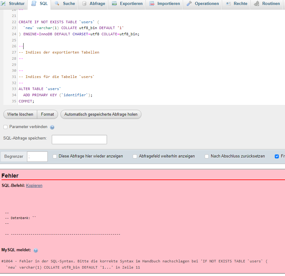 We tried to Upload a Entry/Einreise Script but at the database it comes an error. We dont know how to solve it.