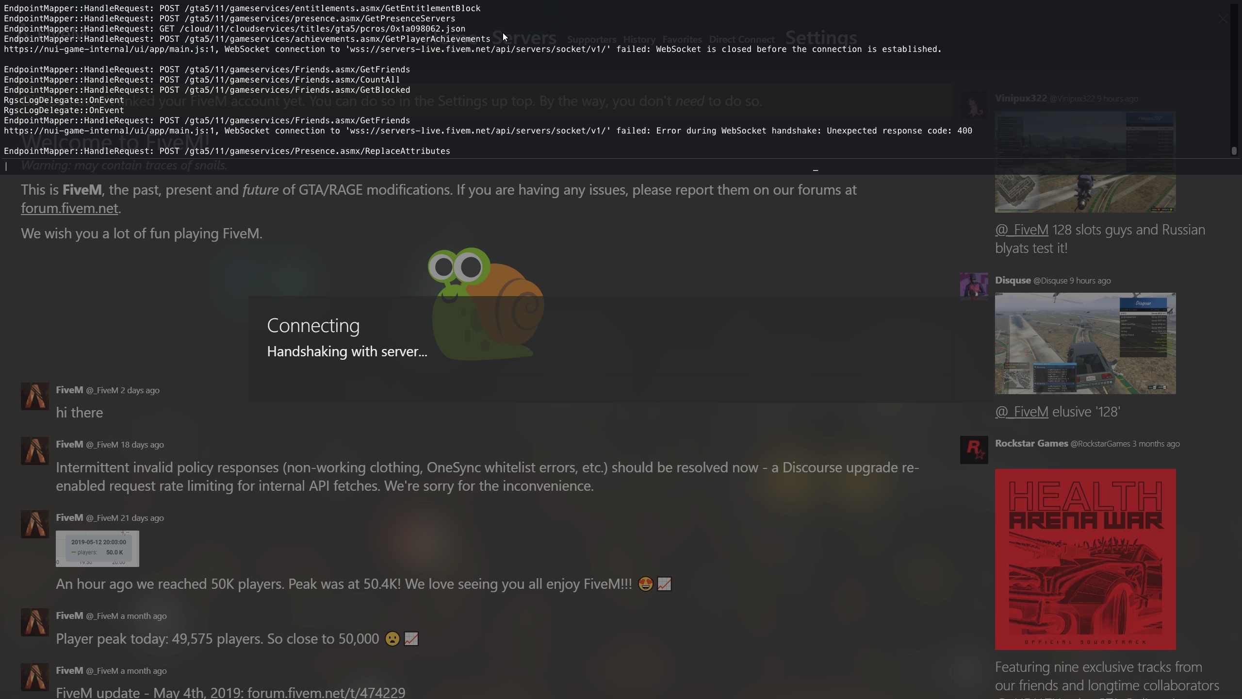 **GTA V version?**2316354 Up to date? yes Legit or Pirate copy? yes Steam/CD/Social Club? steam Windows version? 10 Did you try to delete caches.xml and try again? yes Error screenshot (if any) error 400 System specifications What did you do to get this issue?