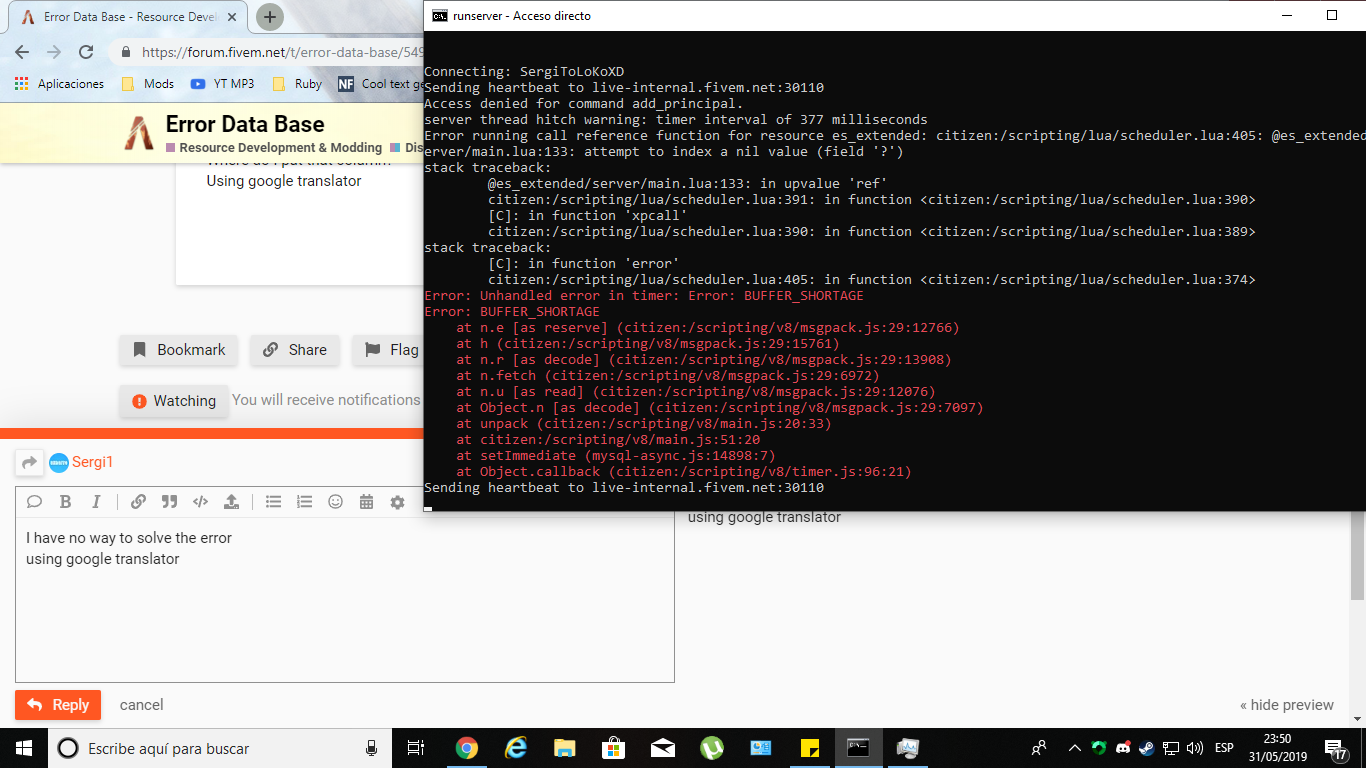 Error running call reference function for resource es_extended: citizen:/scripting/lua/scheduler.lua:405: @es_extended/server/main.lua:141: attempt to index a nil value (field '?')