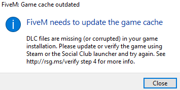 I decided to play GTA 5 online on pirates on the network, launched FIVEM, gave out an error fivem needs to update the game cache, updated GTA and dlc, but nothing helped, how to fix the error
