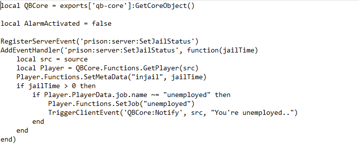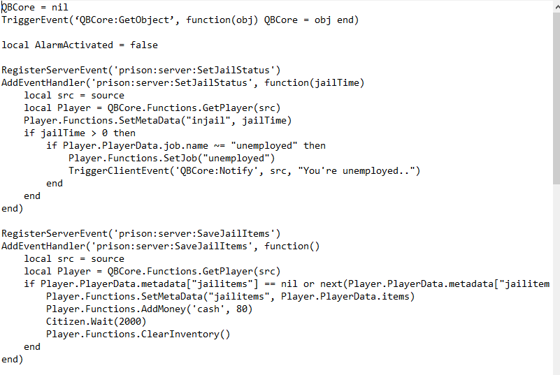 TriggerEvent(‘QBCore:GetObject’, function(obj) QBCore = obj end)