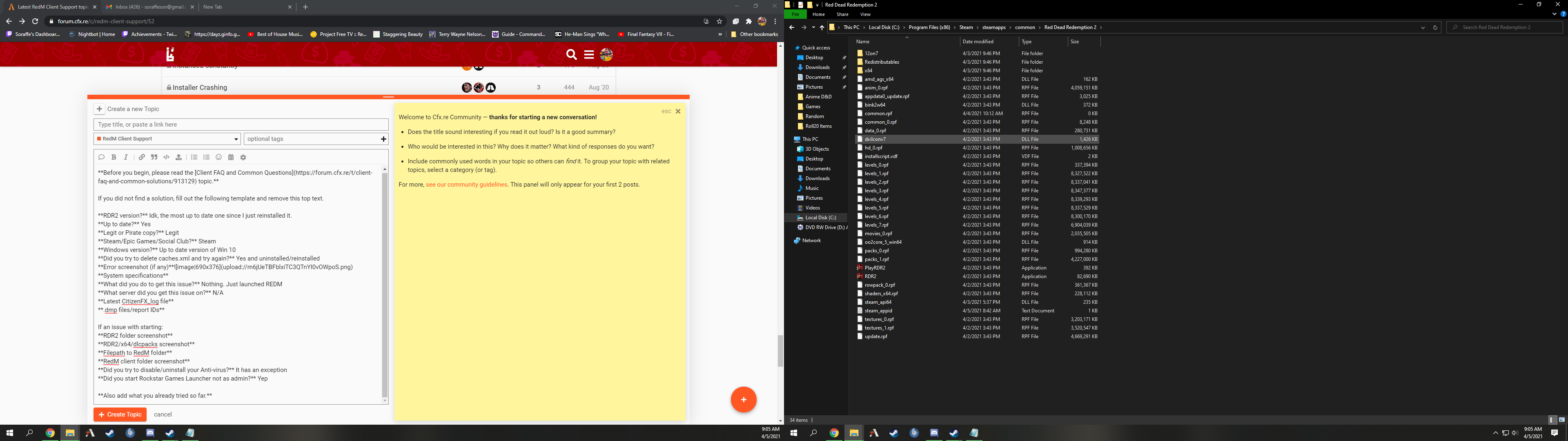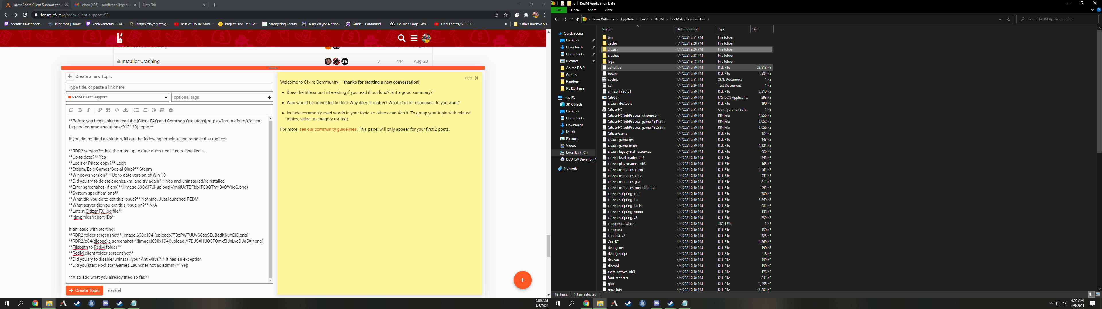 System specifications What did you do to get this issue? Nothing. Just launched REDM What server did you get this issue on? N/A Latest CitizenFX_log file .dmp files/report IDs
