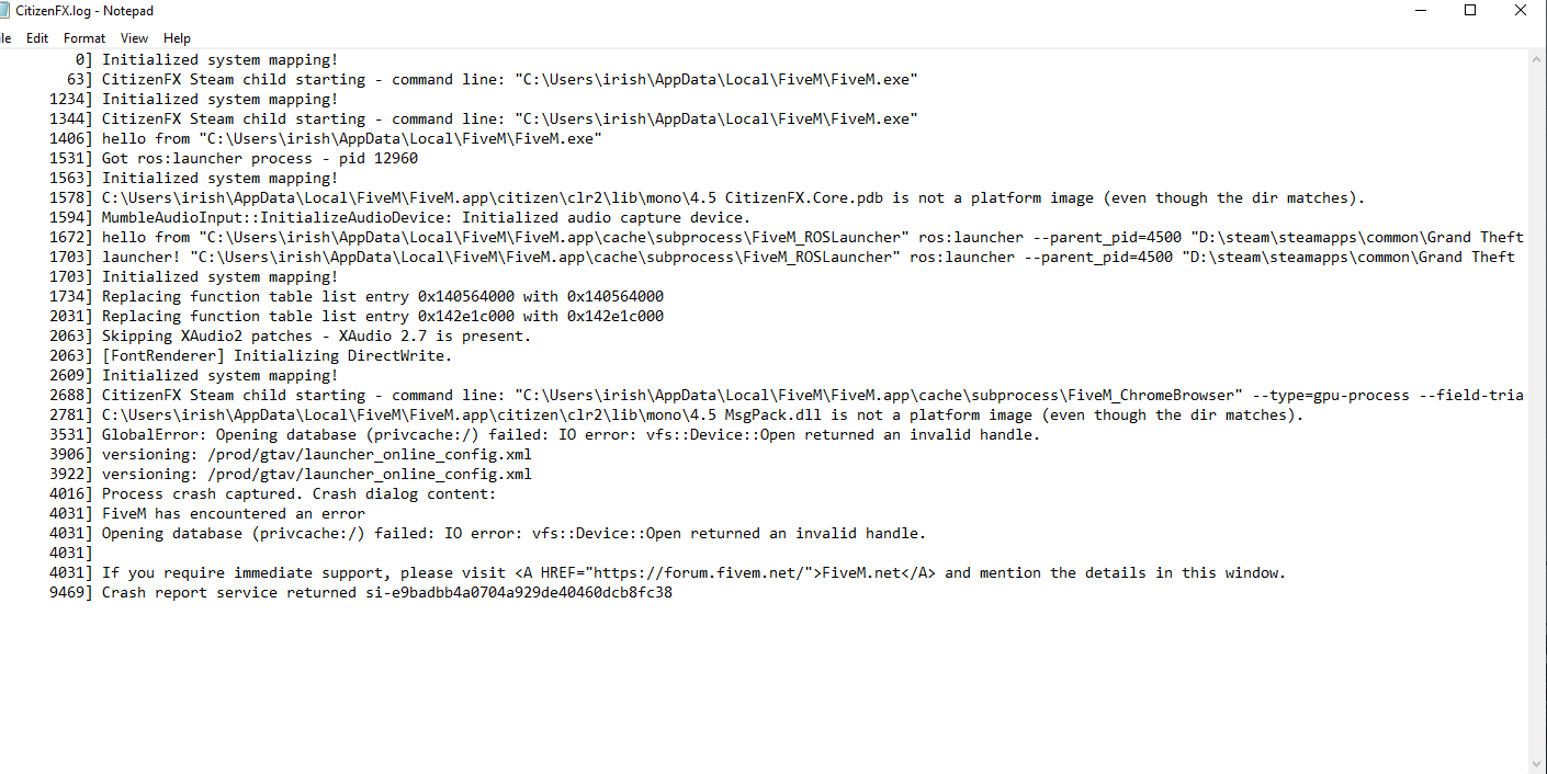**What server did you get this issue on?**couldnt get onto fivem to even open a server CitizenFX.log file