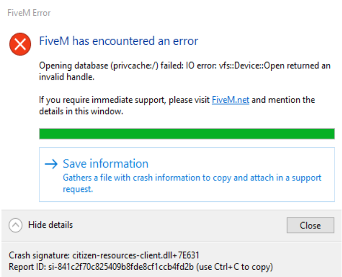 If an issue with starting: GTA V folder screenshot GTA V/update/x64/dlcpacks screenshot Filepath to FiveM folder FiveM client folder screenshot Did you try to disable/uninstall your Anti-virus?