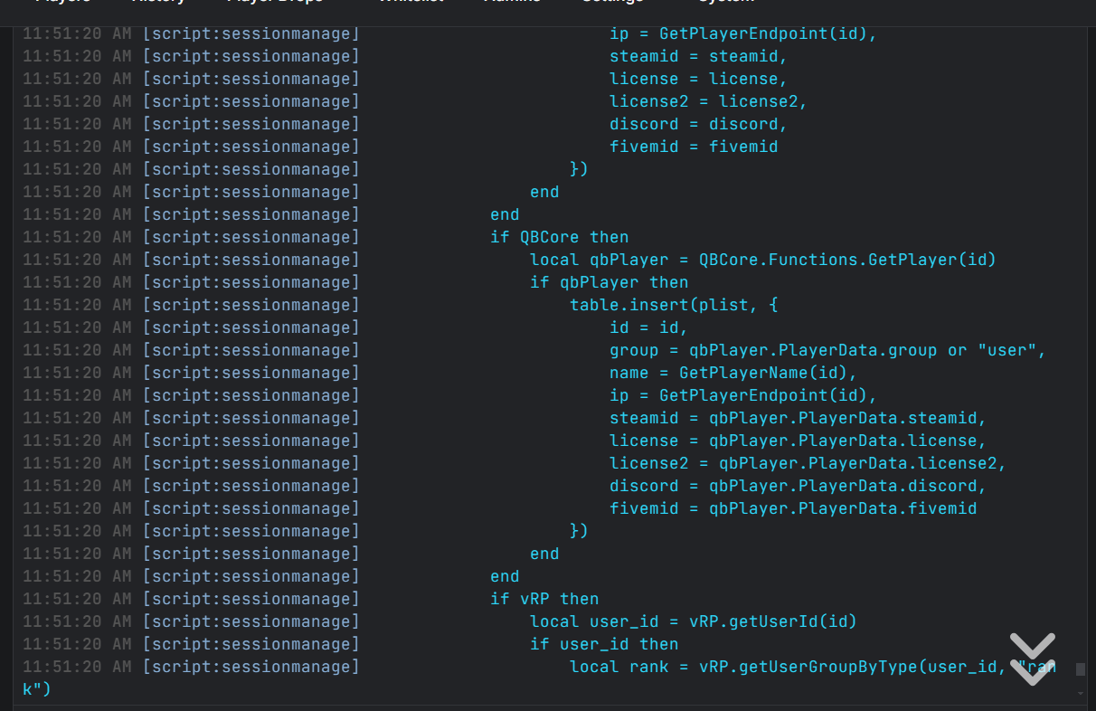Today, upon restart we were met with an endless stream of blue text from [script:sessionmanage] (See Photo 1 for reference) It prints lines and lines and lines, practically every second, making it impossible to skim through the Live console for anything of importance.