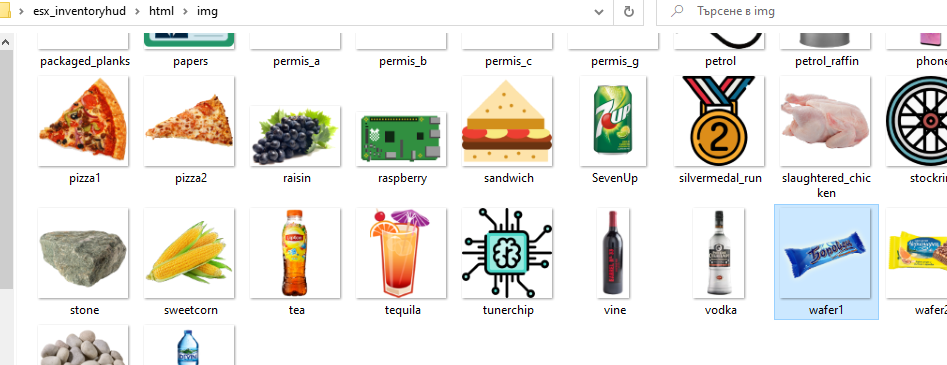 We added an inventory and items to it. We also added pictures of items each in the size 128x128. But they arent showing in the inventory. Photos are in html/img/items. Every picture’s location is added to the resource. Each picture is named as the item.