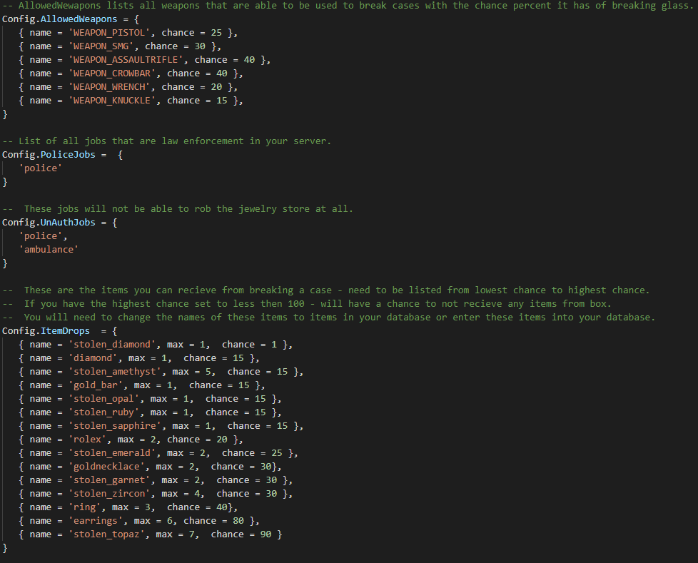 Config.ResetTime = 60 -- Number of Minutes the store will reset after first case is broken