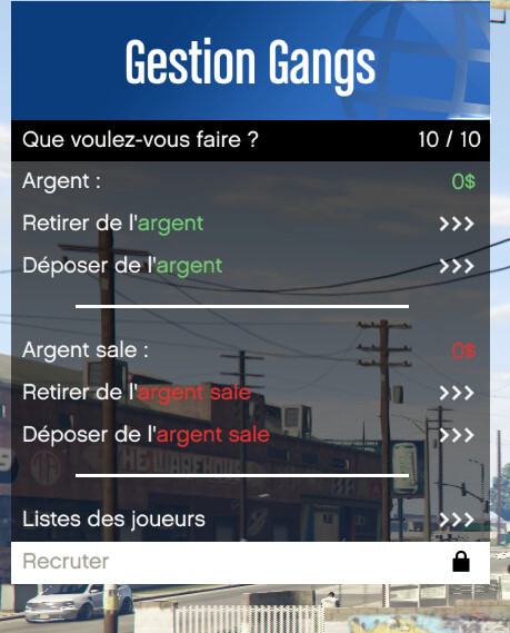 - Menu boss (argent, argent sale, gestion des membres)
