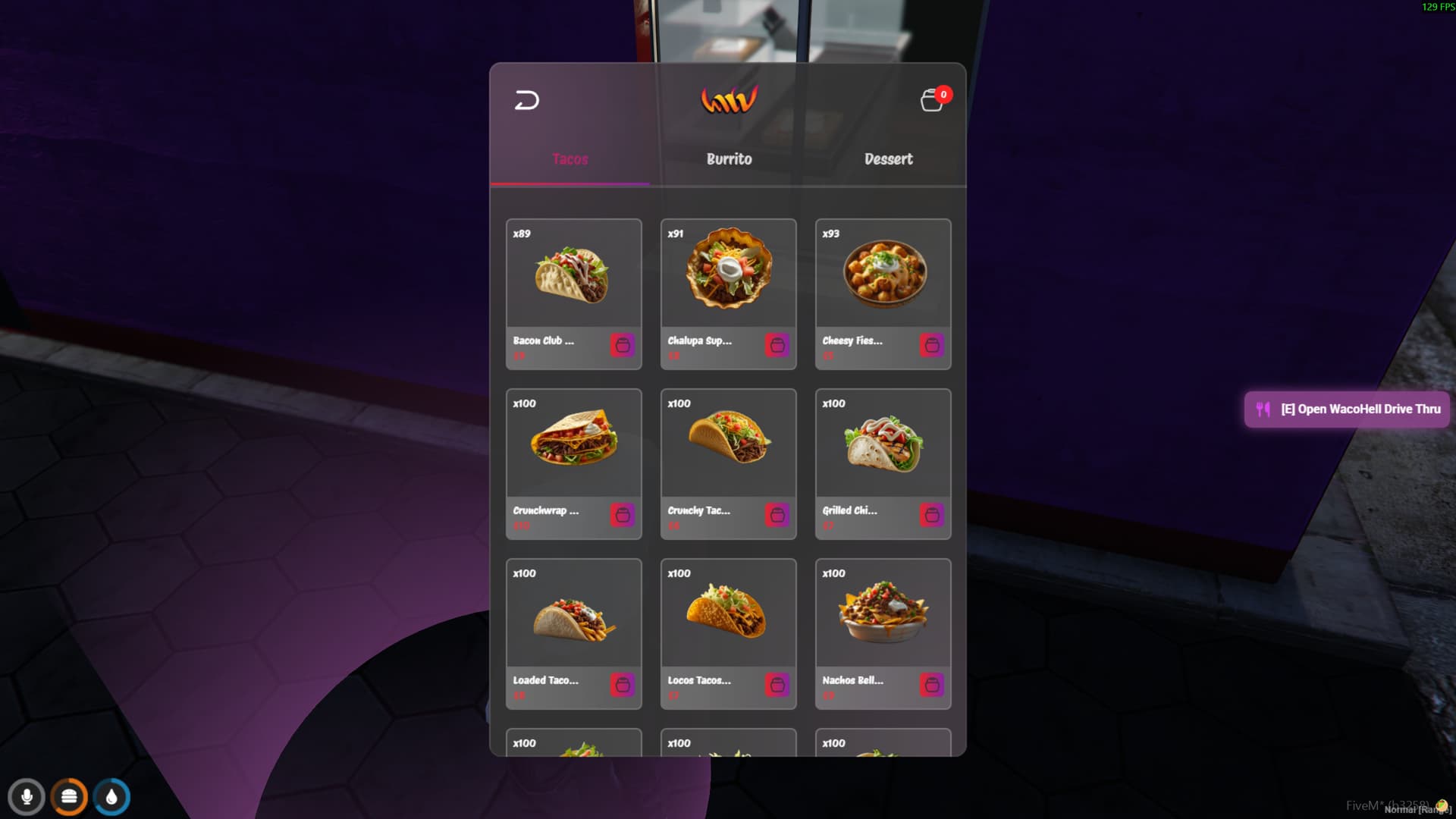 anox-wacohell-drivethru offers a full fast-food drive-thru system with real-time voice chat, interactive tablet ordering, 35+ custom food & drinks with eating/drinking animations, takeaway & storage features, and multi-framework support (ESX, QBCore, QBox).