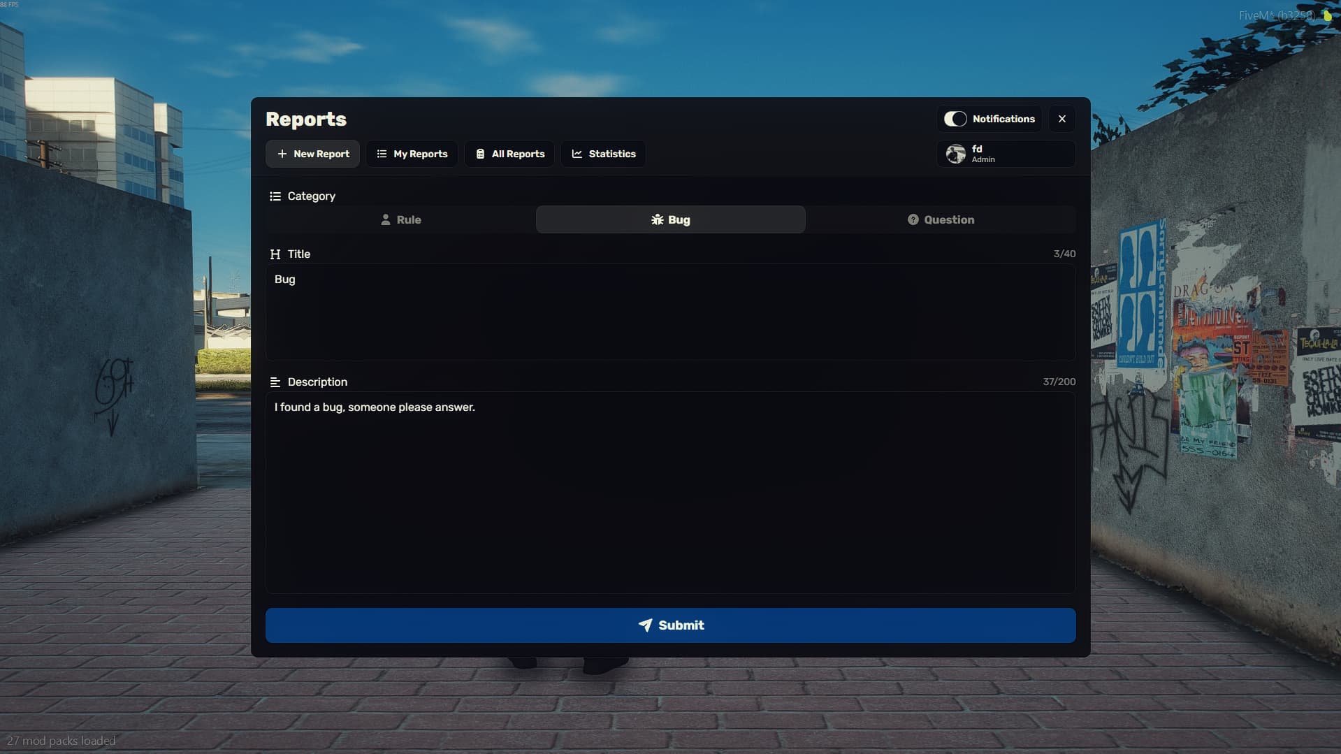 Real Time Chat – Live messaging system between players and admins within reports with cooldown protection.