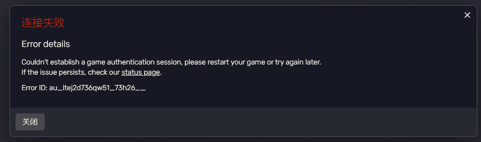 This will be displayed regardless of which server you enter(Couldn’t establish a game authentication session, please restart your game or try again later.