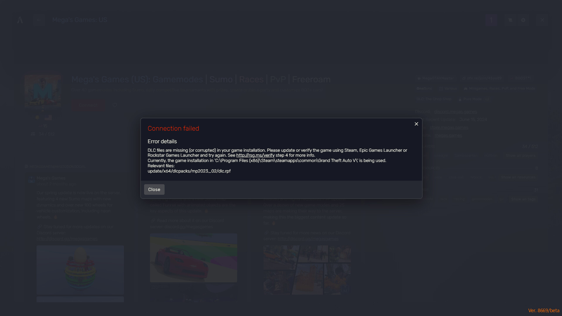 I’m trying to join a server and I get this error every time.
