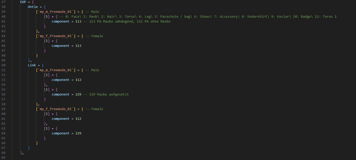I am trying to add two items to the eup part when the mask is connected, one bag (the scba pack) and one mask. But it only takes the bag which i have first. Is it possible to configurate to clothing items?