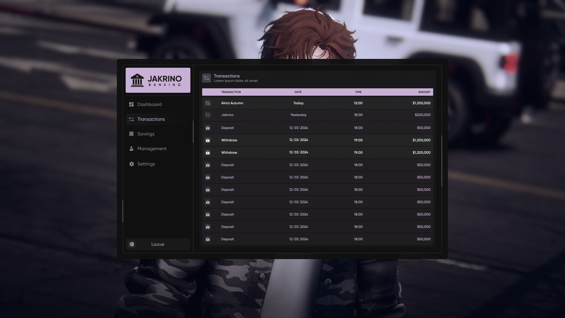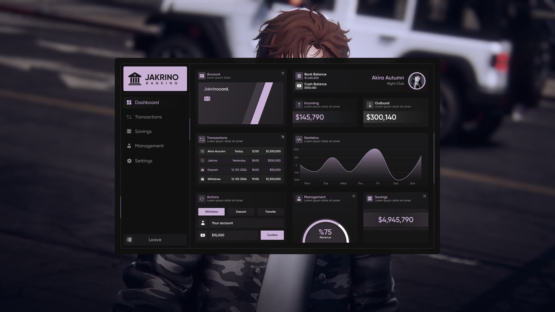 - Perform quick transactions such as withdrawals, deposits, and transfers from the bottom-left corner of the Dashboard.