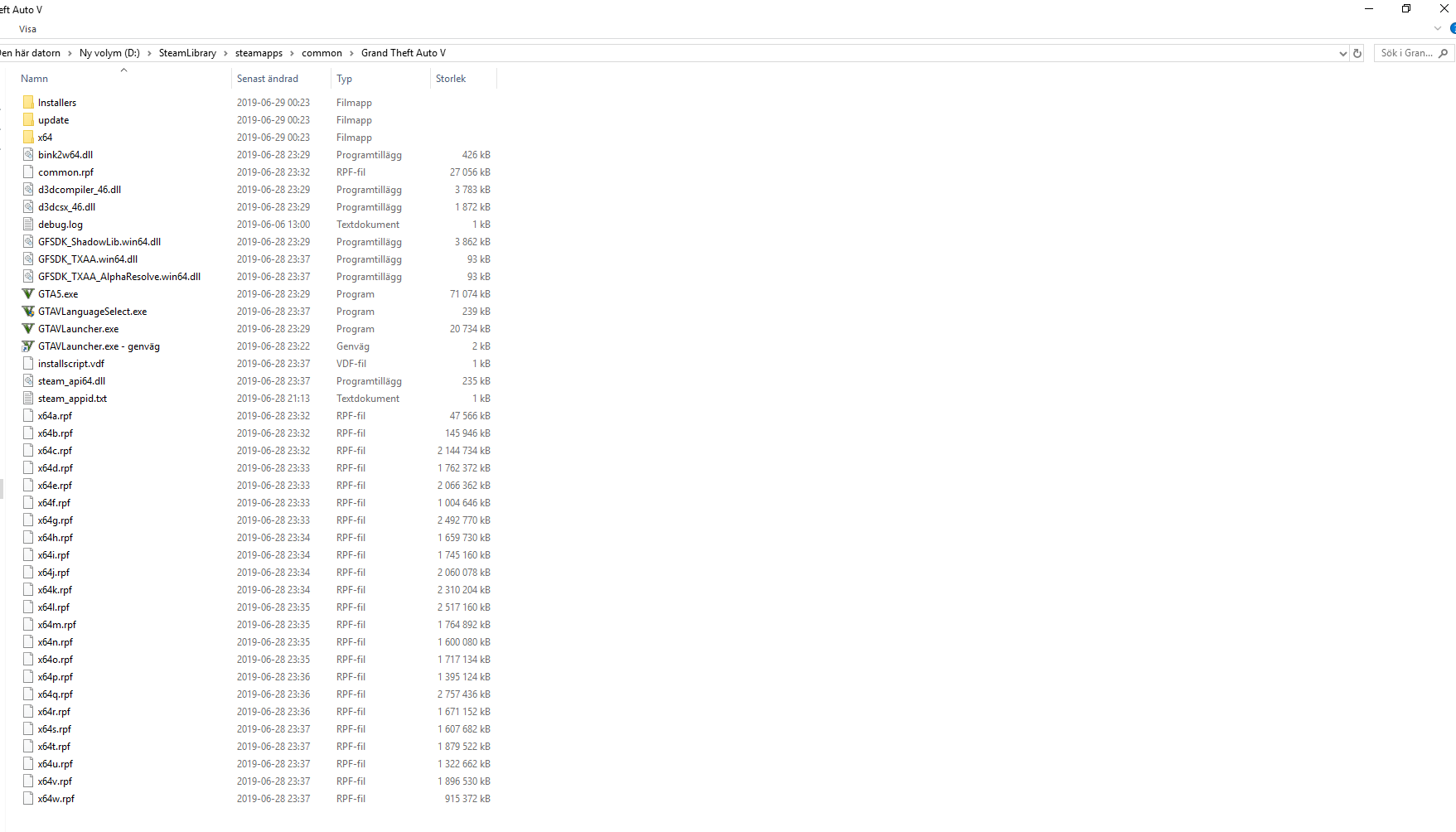 If an issue with starting: GTA V folder screenshot
