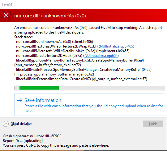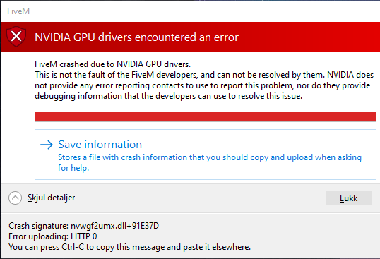 **P.S. The error code states something along these lines, FiveM witch is considered a Grand Theft Auto process. Tried to create a Memory Buffer, and it looks like it failed to do so. It also states this might be related to a Corrupted DirectX install. The only way to fix that is to update it!. So try updating DirectX. And let me know what happens! **