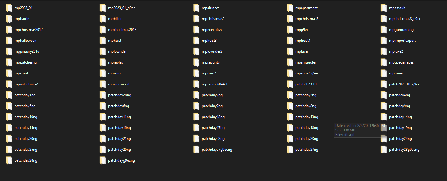 GTA V/update/x64/dlcpacks screenshot: