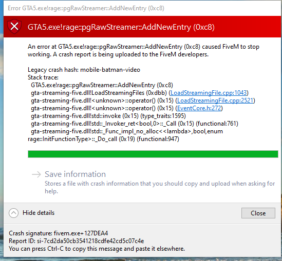 CitizenFX crash zip file (‘Save information’ on a crash):